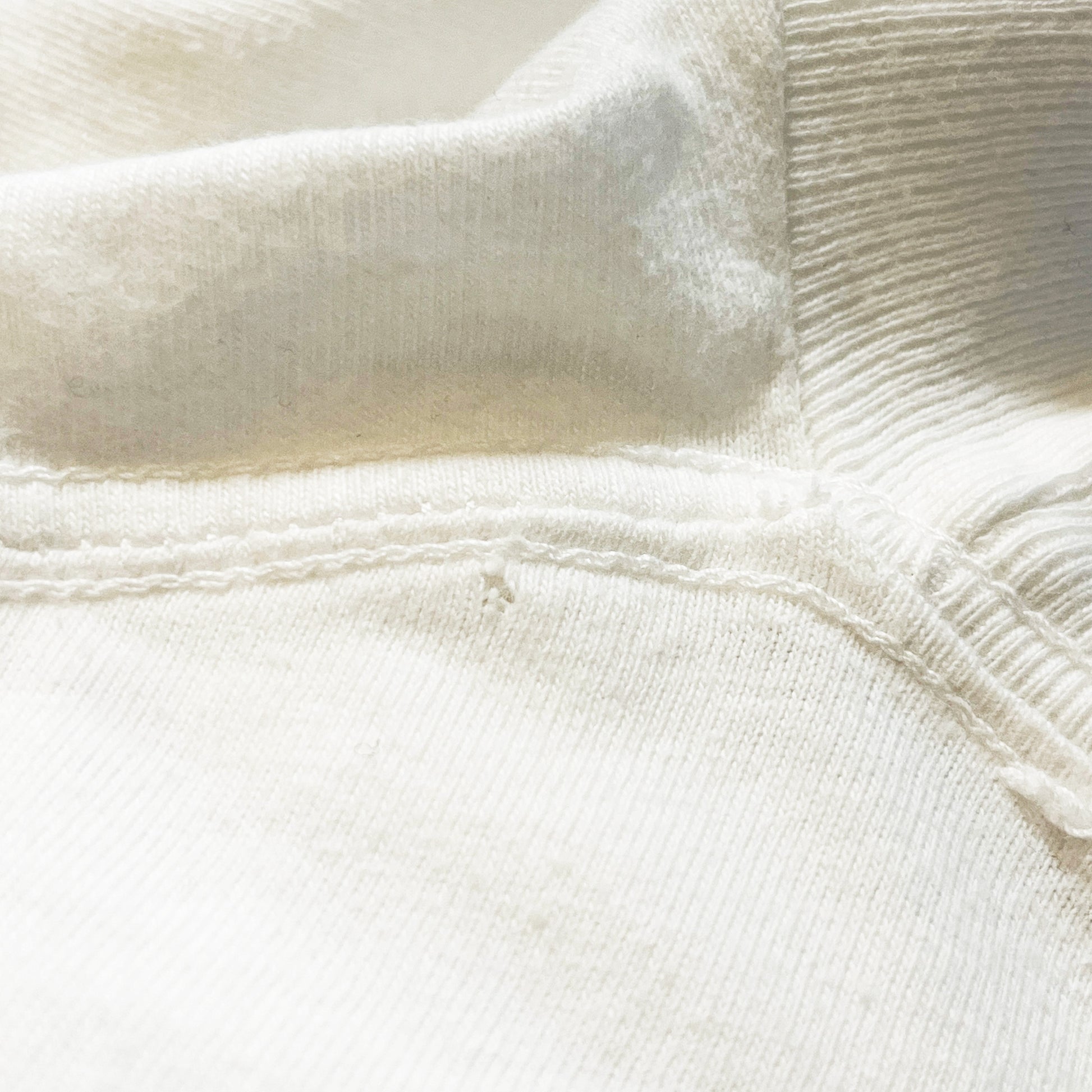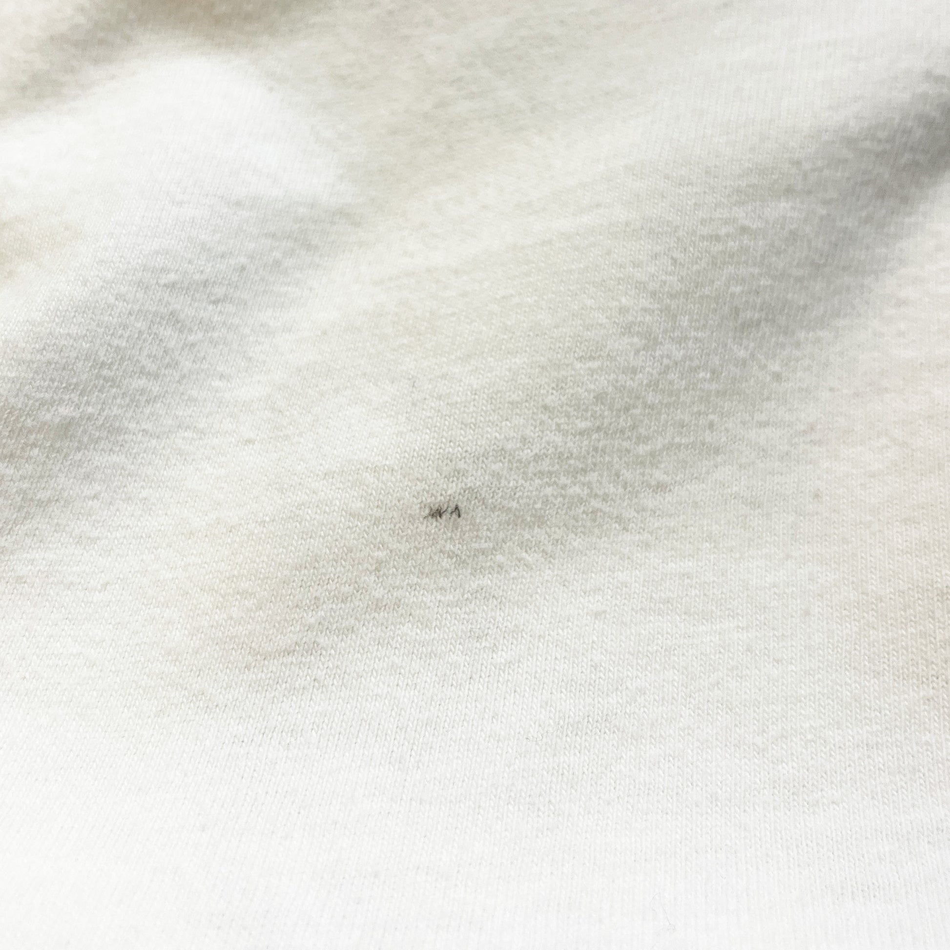 スレ、ピンホール、薄シミヨゴレ、着用感、袖裾共にシングルステッチ。