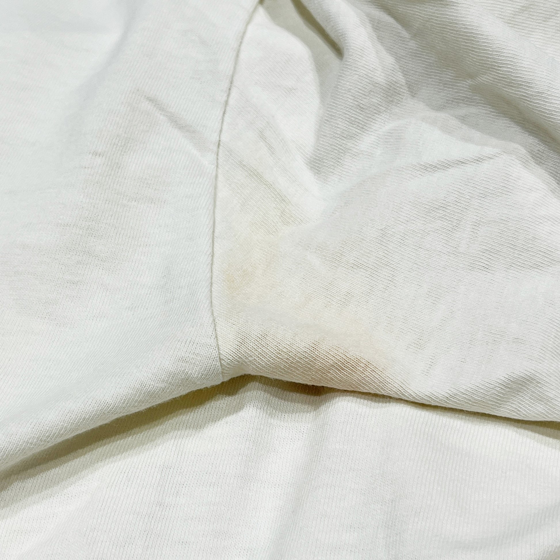 スレ、両脇シミ、小穴箇所、着用感、袖裾共にシングルステッチ。