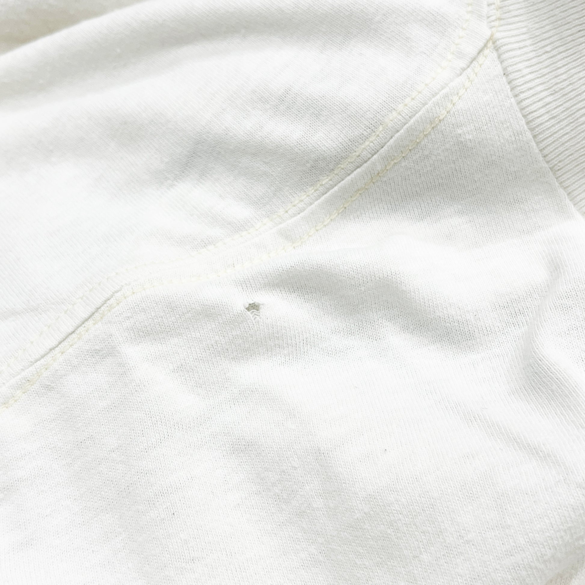 スレ、薄ヨゴレ、シミ、小キズ、着用感、袖シングルステッチ、裾Wステッチ。