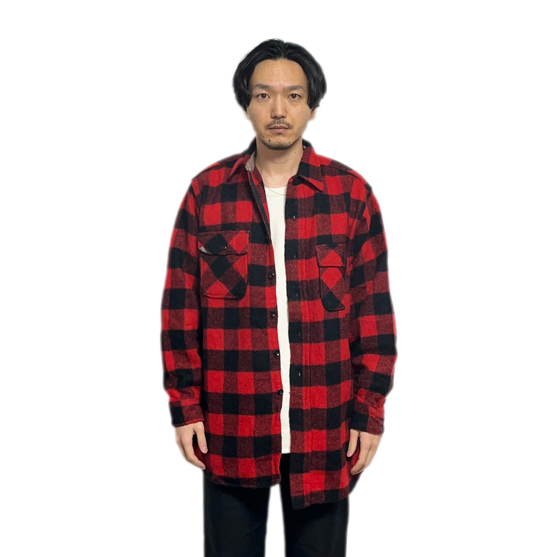 60's PILGRIM バッファローチェック Wool CPO SH 実寸(XL)位 ビッグサイズ!