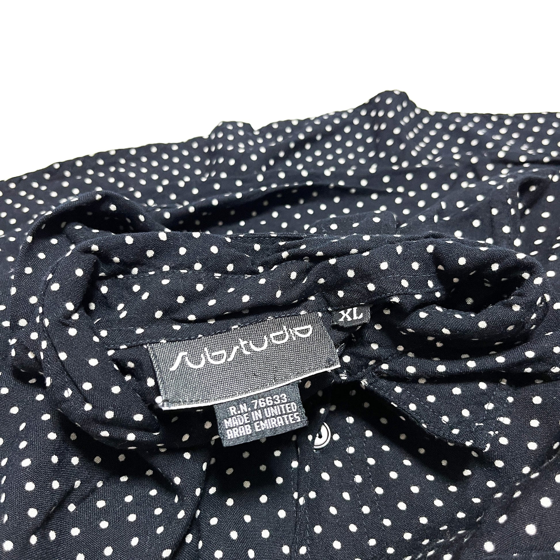 UAE製のレーヨンドットシャツ。